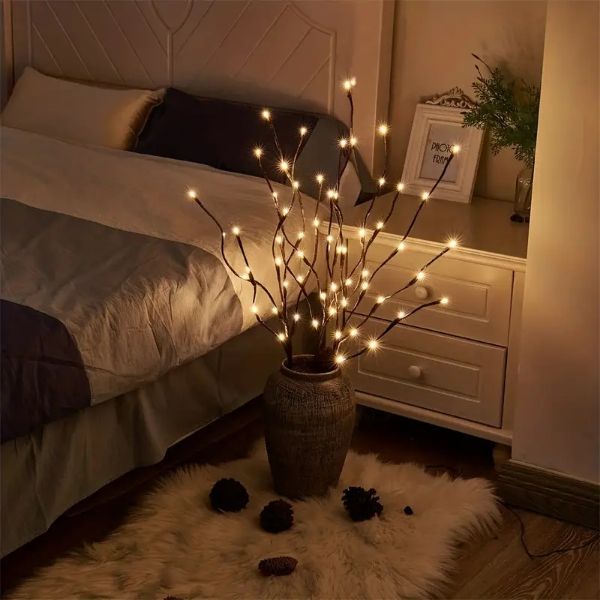 O colecție de lumini cu LED-uri pentru ramuri cuprinde trei ramuri, fiecare ramură având 20 de LED-uri, totalizând 60 de suporturi de lampă mici, oferind o iluminare amplă pentru a stabili o ambianță confortabilă și primitoare.