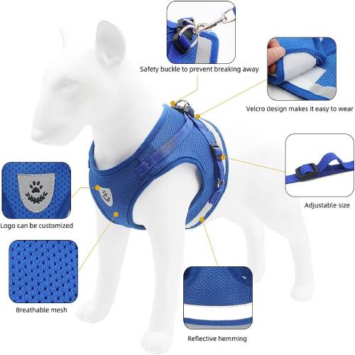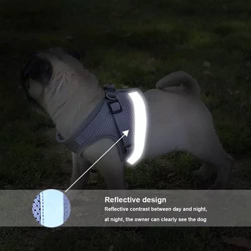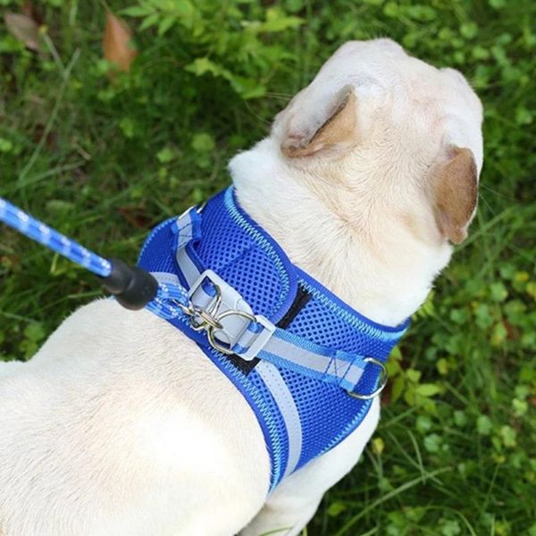 Cureaua și lesa reflectorizantă reglabilă pentru animale de companie are un design din țesătură de plasă moale, confortabilă și respirabilă, care îmbunătățește experiența de purtare a animalului dvs. de companie.