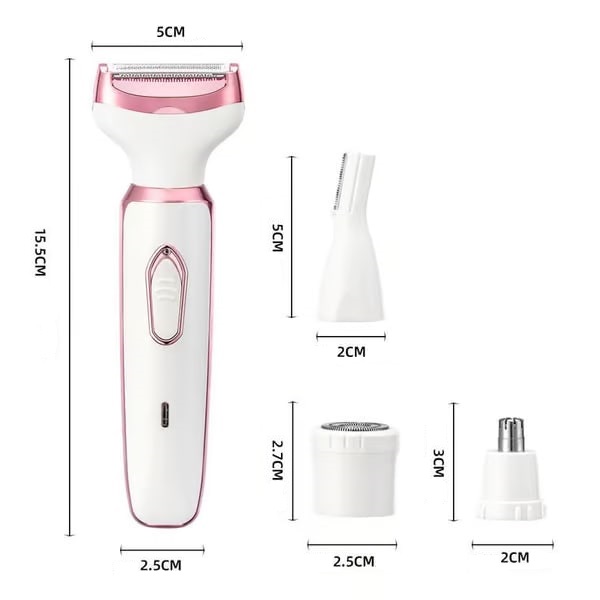 Pachetul include: 1 x Aparat de ras electric LUNATRIM pentru îngrijire fără durere 4 atașamente (nas, față, sprâncene, corp) Cablu de încărcare USB Perie de curățare