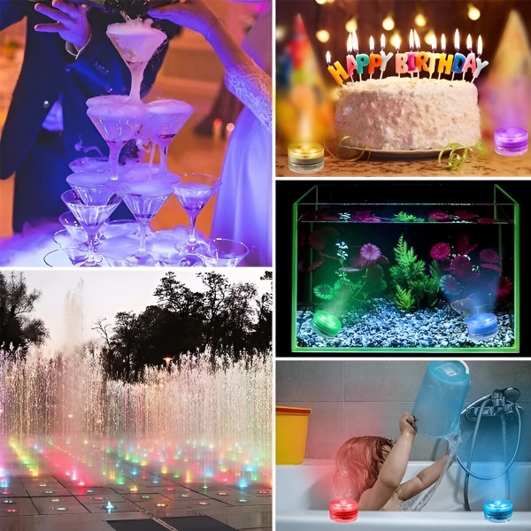 Fără prize, fără scântei! Îmbunătățiți cu ușurință ambianța oricărui acvariu pentru pești, recipient de apă sau găleată de gheață. Aceste mini lumini acvatice cu culori vibrante înfrumusețează elegant piscina, acvariul, vaza sau orice decor. Fie că sunteți gazda unei petreceri sau vă bucurați de o seară liniștită, aceste lumini RGB versatile vă vor îmbunătății instantaneu mediul înconjurător.