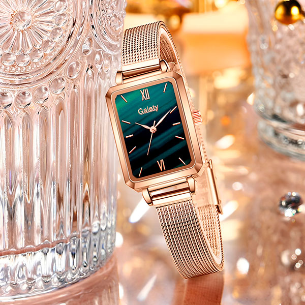 Acest ceas are o culoare rose-gold strălucitoare și un cadran verde frumos. Adaugă stil oricărei rochii, blugi sau ținute formale.