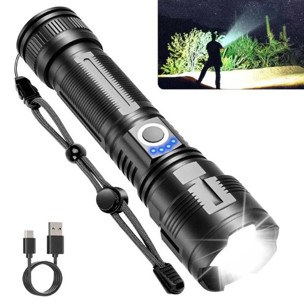 Bateria reîncărcabilă durabilă asigură o utilizare prelungită, permițând lanternei să funcționeze ore în șir.