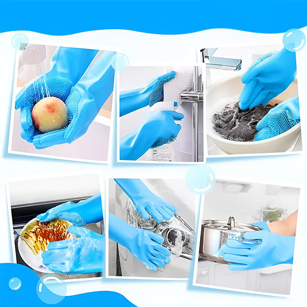 Aceste mănuși sunt ideale pentru spălarea vaselor, oferind o priză sigură și o curățare completă fără a zgâria vesela. De asemenea, sunt perfecte pentru spălarea fructelor și legumelor, asigurându-se că acestea sunt curate și sigure pentru consum.