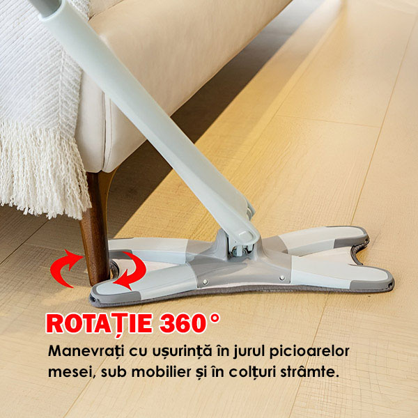Capul mopului flexibil și pliabil ajunge fără efort în spații înguste—sub mobilier, în spatele toaletelor, în jurul picioarelor mobilierului și în colțuri.