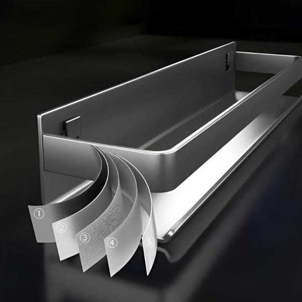 Rafturile sunt realizate din material de înaltă calitate, rezistent la rugină, permițând instalarea chiar și în colțul dușului.