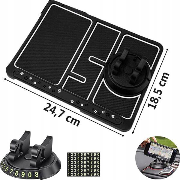 📏 Compatibilitate universală: Cu dimensiuni de 24,7 x 18,5 cm, acest covoraș se potrivește perfect pe orice bord auto, asigurând o plasare fermă și sigură.