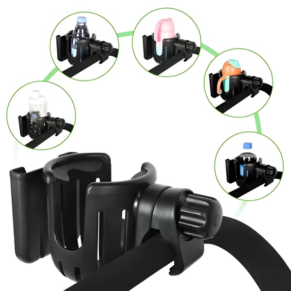 Proiectat pentru a ține totul, de la băuturi la telefoane și obiecte mici, făcând fiecare plimbare mai convenabilă.
