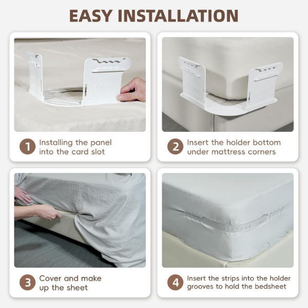 Acești suporturi le fixează la loc astfel încât să poți dormi neîntrerupt și să te trezești cu un pat neted, fără cute.