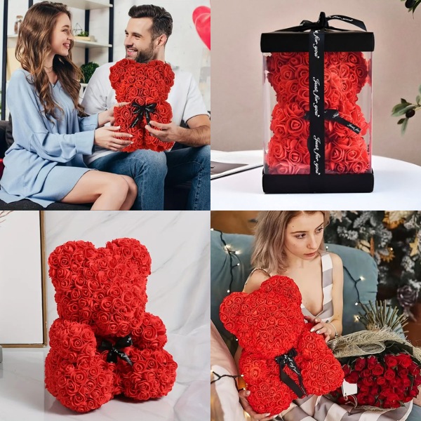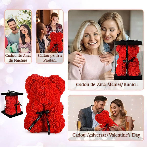 🎁 Surprinde-o cu un ursuleț romantic din trandafiri care nu se ofilesc.